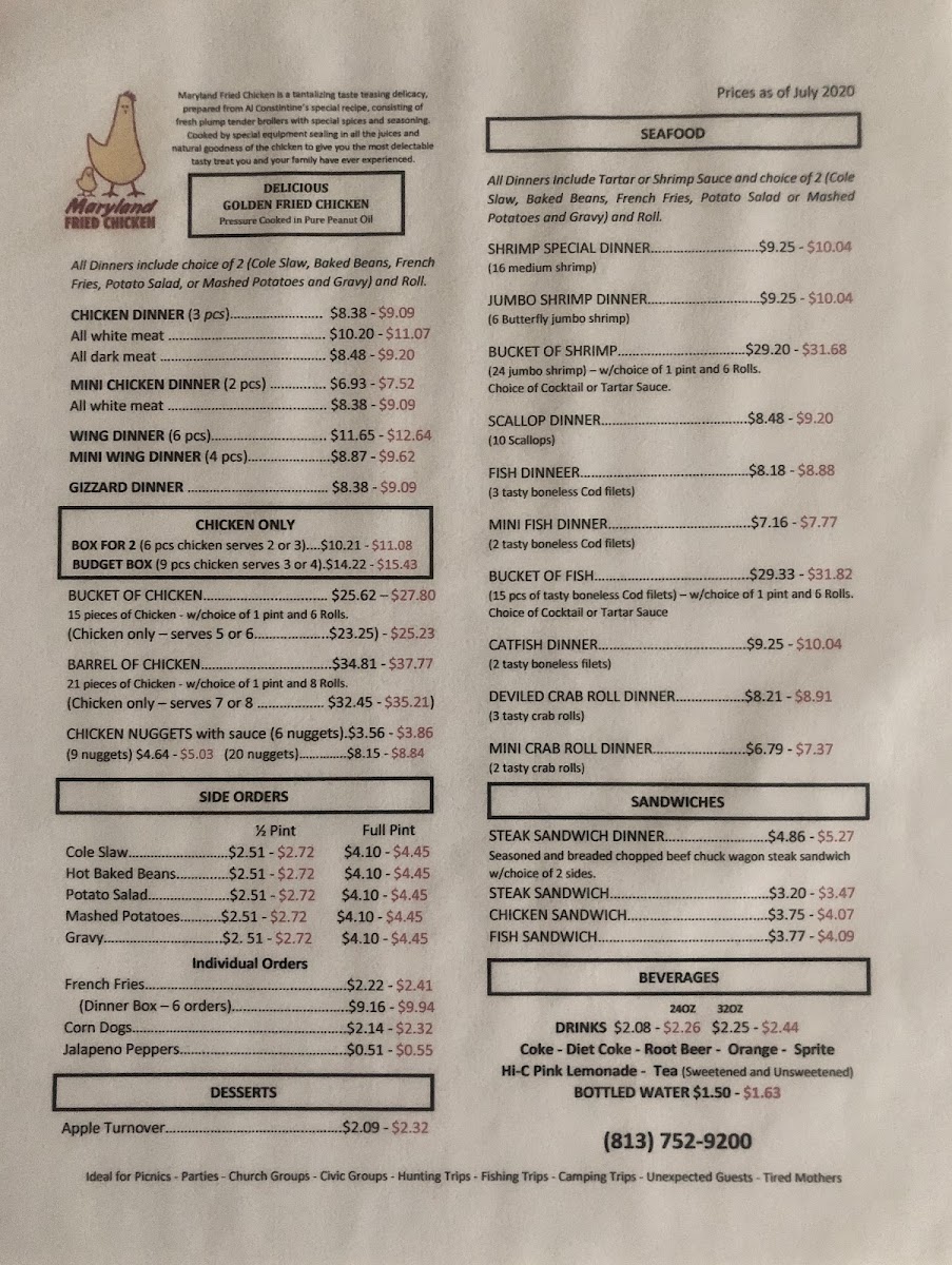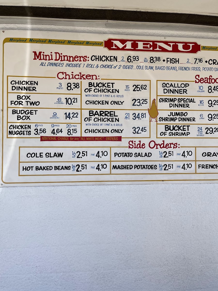 Maryland Fried Chicken Menu